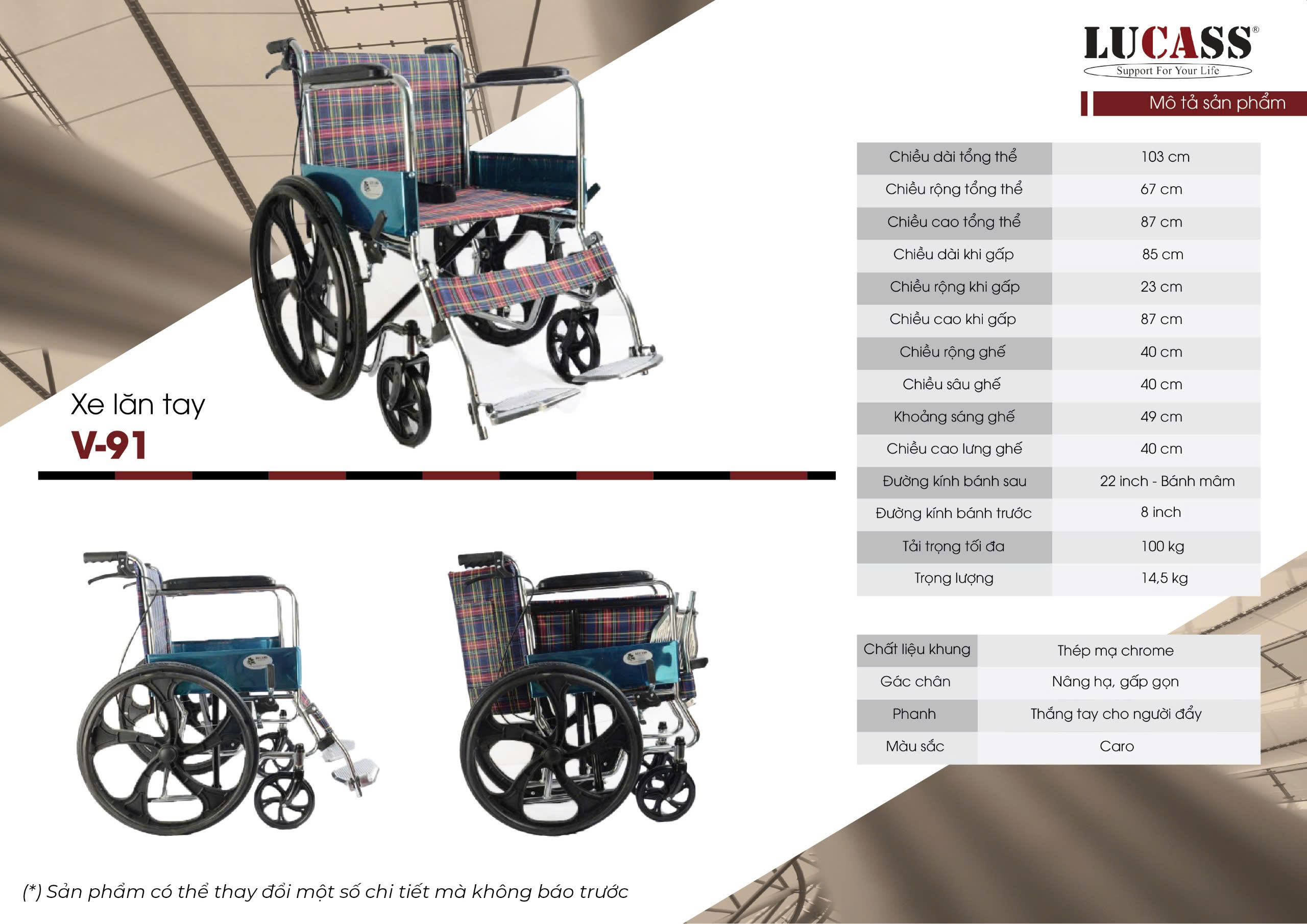 ♥ Xe Lăn Tay Lucass V-91 Caro là dòng xe lăn mang thiết kế cơ bản nhất.